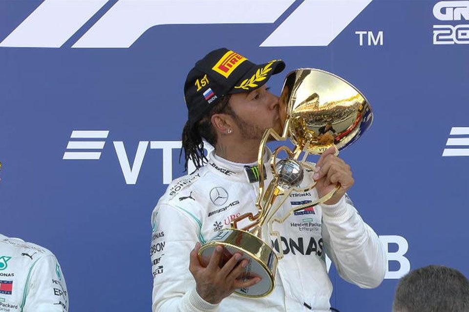 El piloto británico Lewis Hamilton ha logrado este domingo la victoria en la carrera del Gran Premio de Rusia, decimosexta cita del Mundial de Fórmula 1, liderando el doblete de Mercedes junto al finlandés Valtteri Bottas por delante del monegasco Charles Leclerc (Ferrari).