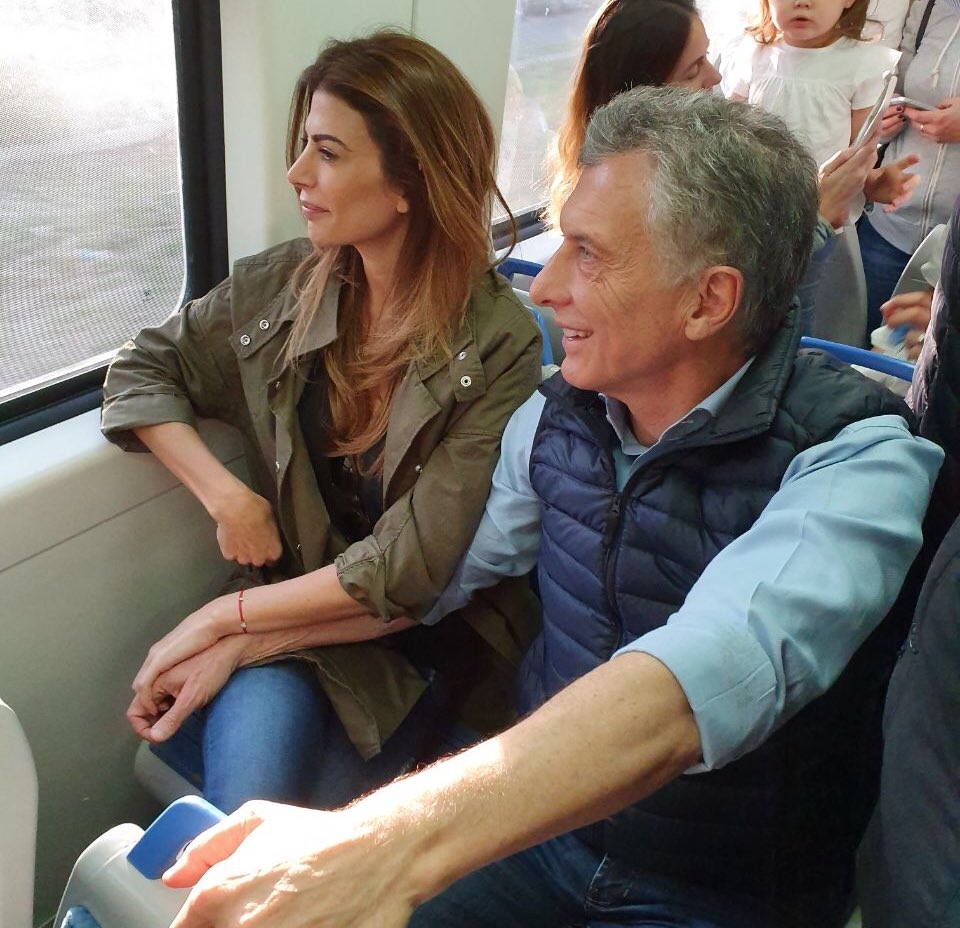 Macri y su esposa Juliana Awada tomaron el tren para ir al acto en Barrancas de Belgrano (Foto: Twitter)