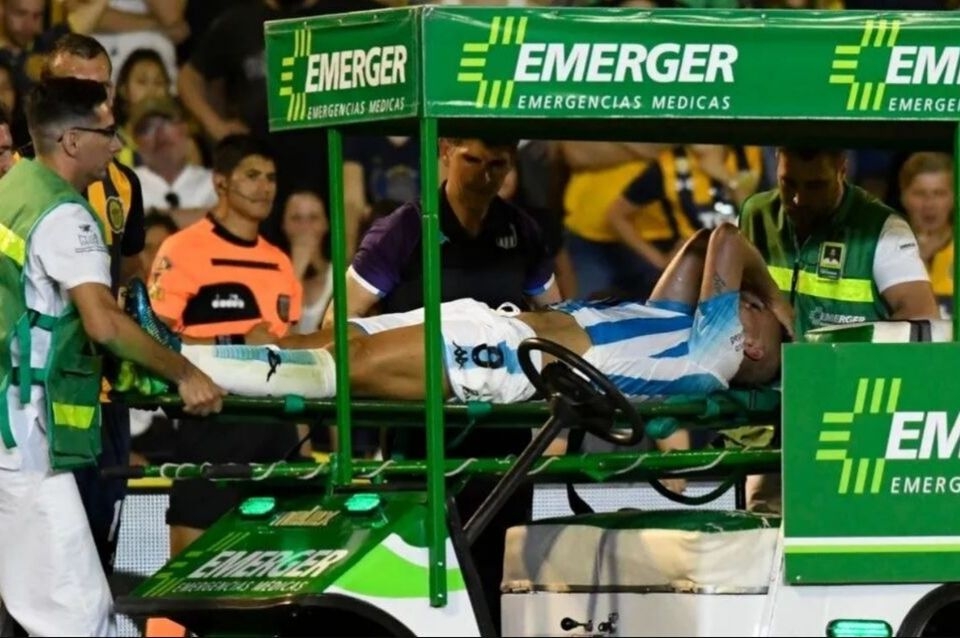 El Pulpo tuvo un choque con el mediocampista de Central Fabián Rinaudo, sobre el final del partido jugado en el Gigante de Arroyito, que lo obligó a dejar el campo de juego en camilla.