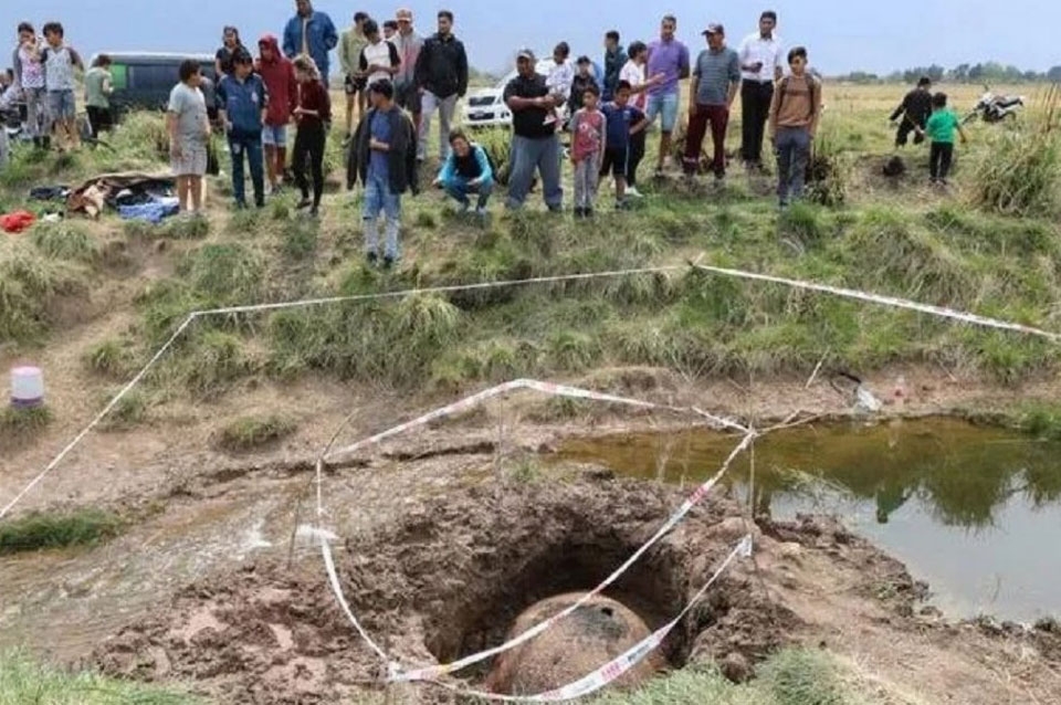 El hallazgo ocurrió cuando encontraron una extraña esfera, que presentaba una textura rugosa, enterrada a poco más de un metro de profundidad, cerca del curso de agua.