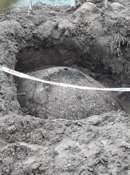 Pescaban en un arroyo y encontraron un caparazón de gliptodonte