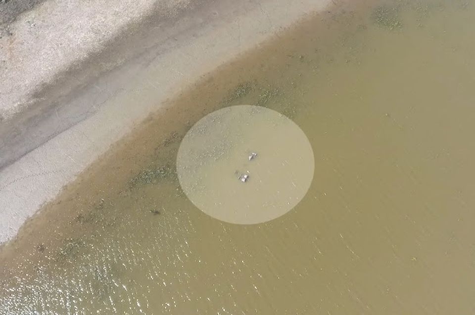 José Luis Aguilar, Javier y Lucas Saucedo, David Tettamanti, Fernando Chiodini y Cristian Aguirre, desembarcaron en la isla con un drone para sobrevolar lentamente el lugar y tratar de ubicar el naufragio. Gracias a ese drone se pudieron sortear los 1.200 metros de pantano que hoy rodean los restos sumergidos en el lodo.
