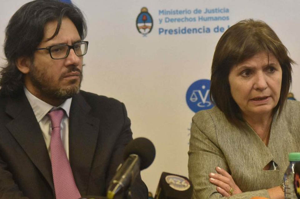 Los ministros presentaron el proyecto de ley en la sede del ministerio de Seguridad, donde también estuvieron los secretarios de Seguridad, Eugenio Burzaco, de Cooperación con los Poderes Constitucionales, Pablo Noceti, de Gestión Federal de la Seguridad, Enrique Thomas, y el subsecretario de Articulación Judicial, Guillermo Soares Gache, entre otros funcionarios.