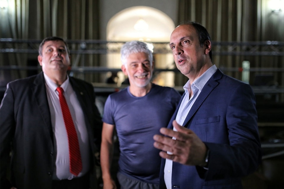 El intendente y el rector de la UNL recorrieron el Paraninfo y los patios del Rectorado, que son acondicionados de cara al histórico evento de este domingo, que se transmitirá a todo el país y el exterior.