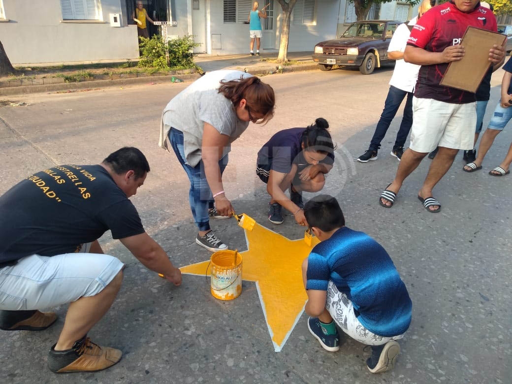 Estrellas Amarillas comenzó su labor en la ciudad de Santa Fe a mediados de marzo del año pasado pintando estrellas de ese color tanto en calles, como en rutas, para recordar a las víctimas de accidentes de tránsito y concientizar al respecto.