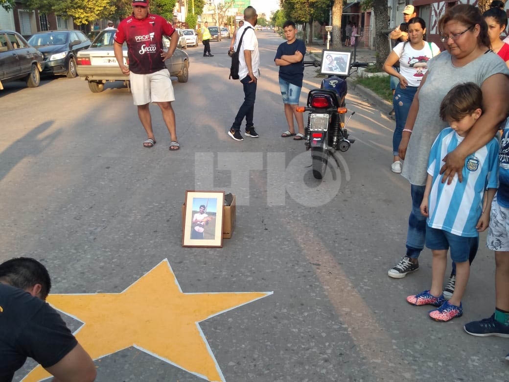 La pintada se realizó este viernes por la tarde y participaron familiares y amigos del joven que era mecánico de motos, “yo le tenía un fe ciega, siempre diciéndole ‘fijate tu hermano’, jamás pensé que iba a quedar él arriba de una moto”.