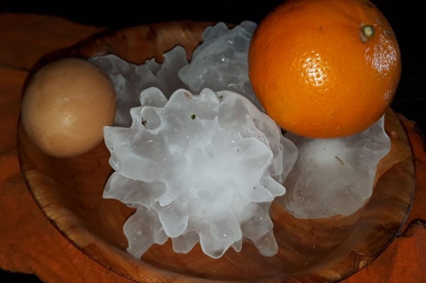 Esta localidad sufrió el viernes por la noche una singular pedrada en medio de los temporales que asolan el centro del país. Bolas de hielo de hasta 300 gramos se abatieron sobre la localidad situada a 265 kilómetros de Rosario. Los vecinos las compararon con huevos y naranjas o limones y aún eran más grandes.