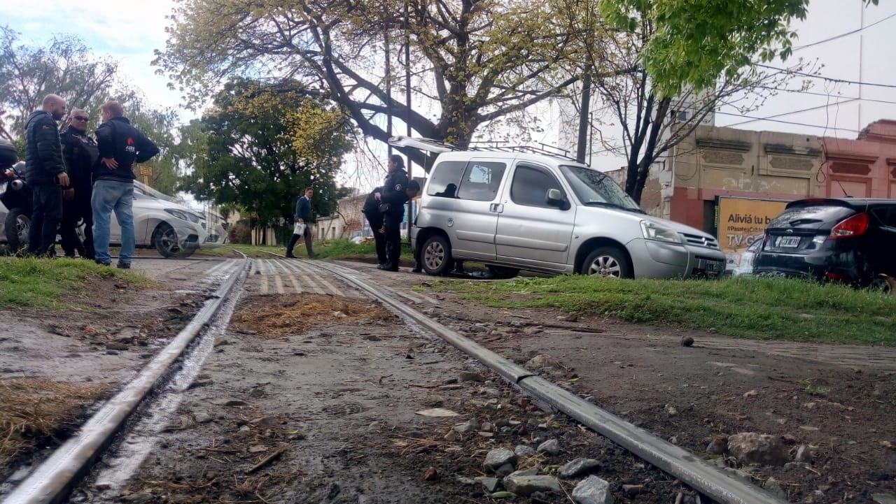 Un tren chocó a un automóvil estacionado y lo dejó en el medio de la calle sin detener su marcha. El hecho ocurrió en San Jerónimo entre Cándido Pujato y Mariano Comas cuando una formación del Belgrano CArgas se trasladaba de Oeste a Este por las vías que cruzan la ciudad.