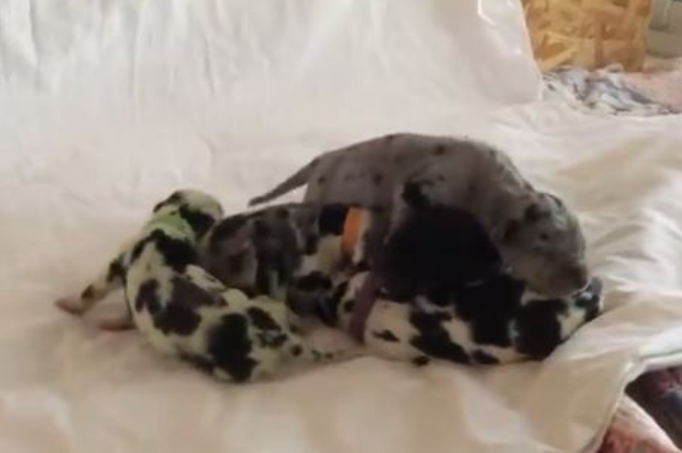 ☘🐕 GREEN GREAT DANE: Yes, you read that right. Caddy Williams of Canon City sent us this video of her new litter. One is not like the others.https://t.co/ATu31QO4lJ pic.twitter.com/XBkiKRQl1M