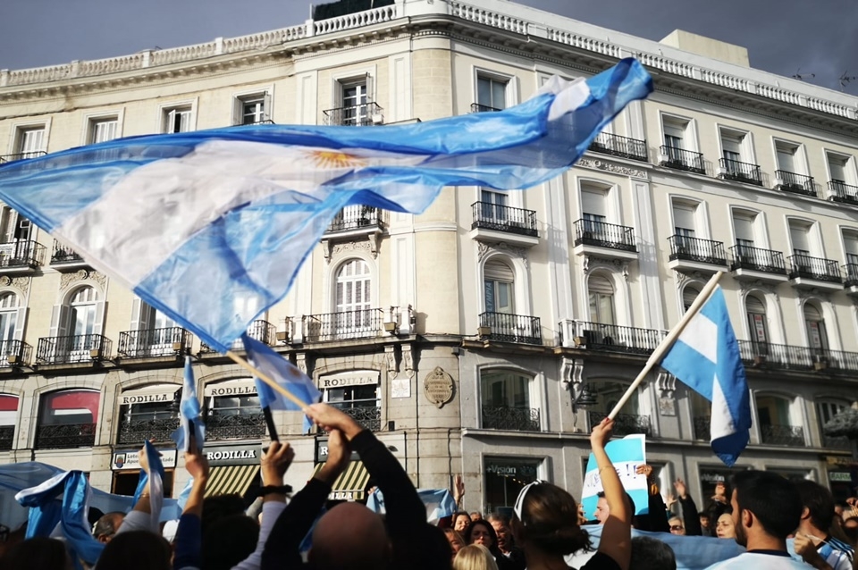 En la Puerta del Sol se congregaron cientos de argentinos, la mayoría con banderas argentina para corear consignas a favor de Macri y también el clásico "Argentina, Argentina", entre otras. En Barcelona otro grupo de argentinos entonó el Himno Nacional Argentino, tomados de la mano y con banderas del país.