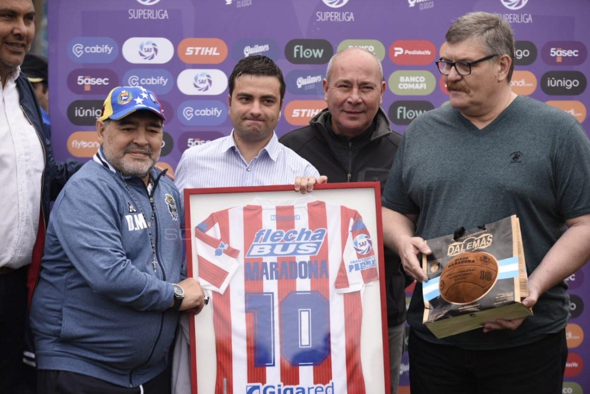 En la previa hubo un reconocimiento por parte de la comisión directiva para Diego Armando Maradona, le obsequiaron una camiseta de Unión con su nombre y el “10” estampado en la espalda.