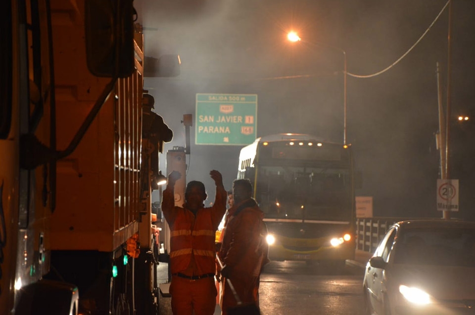 Durante el dia el puente queda liberado al transito sin restricciones con precaucion en los tramos intervenidos. Estas obras de fresado y repavimentacion continuaran las semana proxima dependiendo de las condiciones climaticas. Colaboran en el operativo nocturno de transito la Municipalidad de Santo Tome, APSV y Policia de la Provincia.