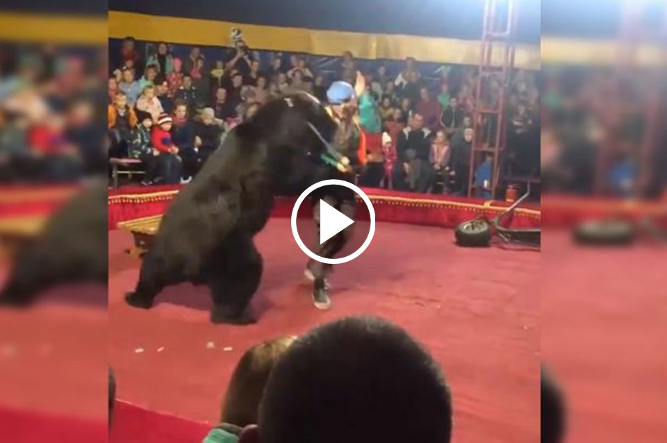 Durante un espectáculo en una función circense en la república rusa de Carelia, un oso atacó a su domador mientras los espectadores registraban los hechos a través de las redes sociales.