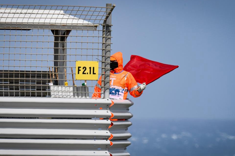 Y, una vez más, tuvo que mostrarse bandera roja durante la sesión, y nuevamente por un motivo muy parecido al de los terceros libres, al volar algunos de los componentes de la pizarra de uno de los equipos y caer en plena recta de meta.