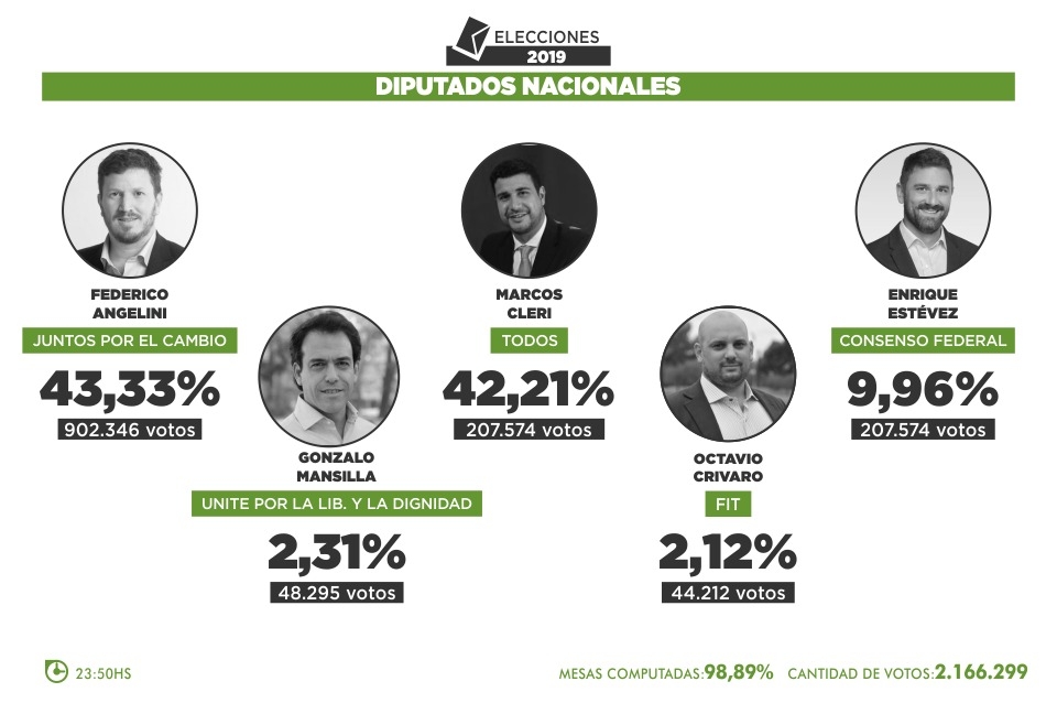 De esta manera, los diputados electos que asumirán el próximo 10 de diciembre serían: Federico Angelini, Ximena García, José Carlos Núñez, Laura Castells y Juan Martín, Juntos por el Cambio.