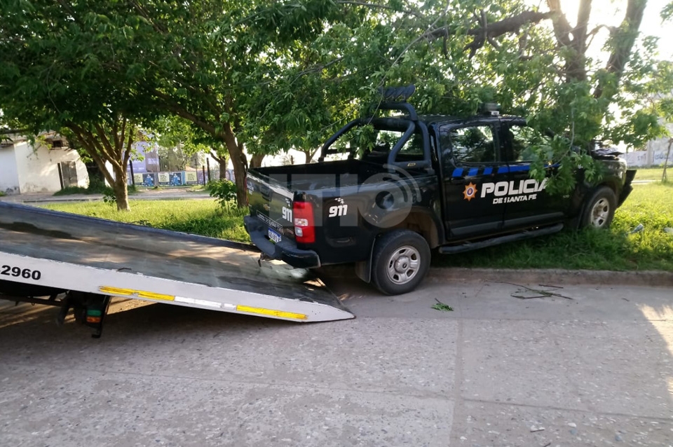 Una mujer y su hija viajaban a bordo de una camioneta policial cuando está comenzó a golpear a los integrantes de la fuerza. La inédita situación derivó en el impacto del vehículo con un árbol en las inmediaciones de Pasaje Santa Fe y Ángel Casanello.