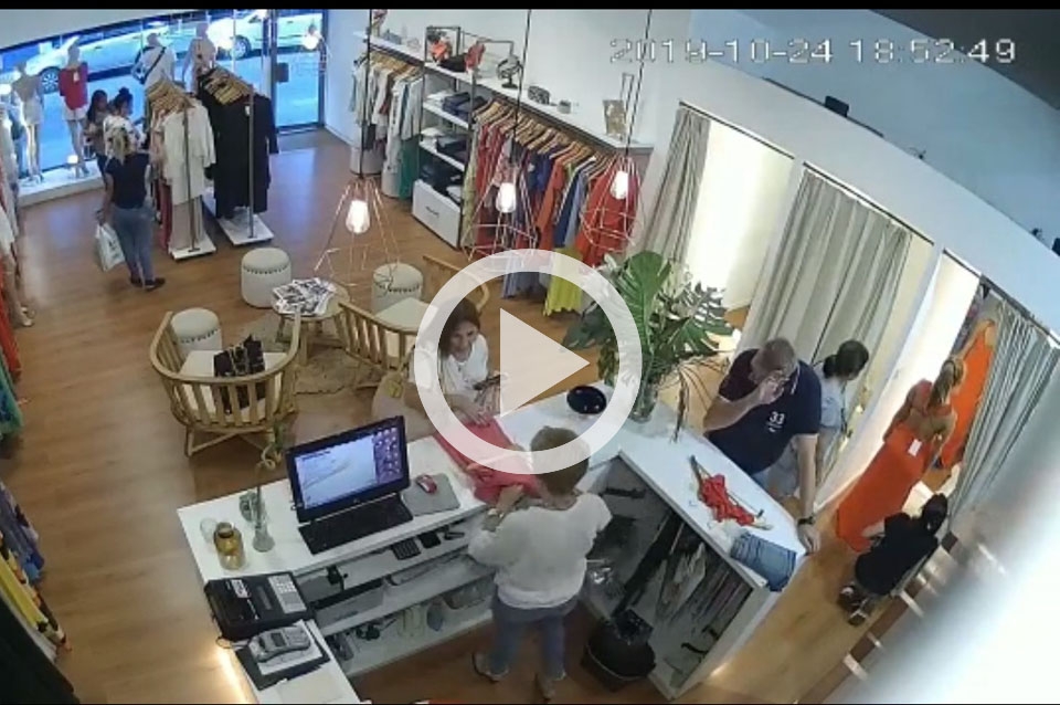 Siguiendo la secuencia, se puede ver en el video como las mujeres se hacen las distraídas mirando prendas mientras esperan que las empleadas dediquen su tiempo a otras mujeres que estaban en los probadores. Es en ese momento cuando comienzan a meter vestidos dentro de unas bolsas que tenían en su mano.