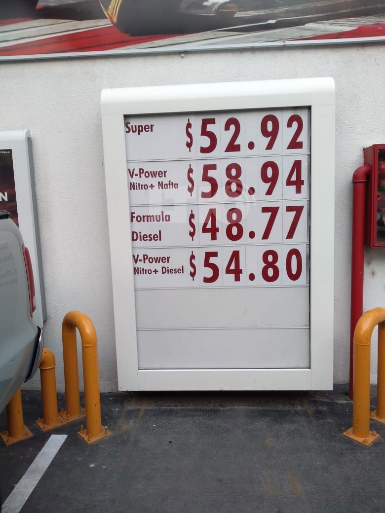 De esta manera, Shell llevó el precio de la nafta súper a $52,92; la V-Power $58,94; Fórmula Diesel $48,77; y V-Power Diesel $54,80.
