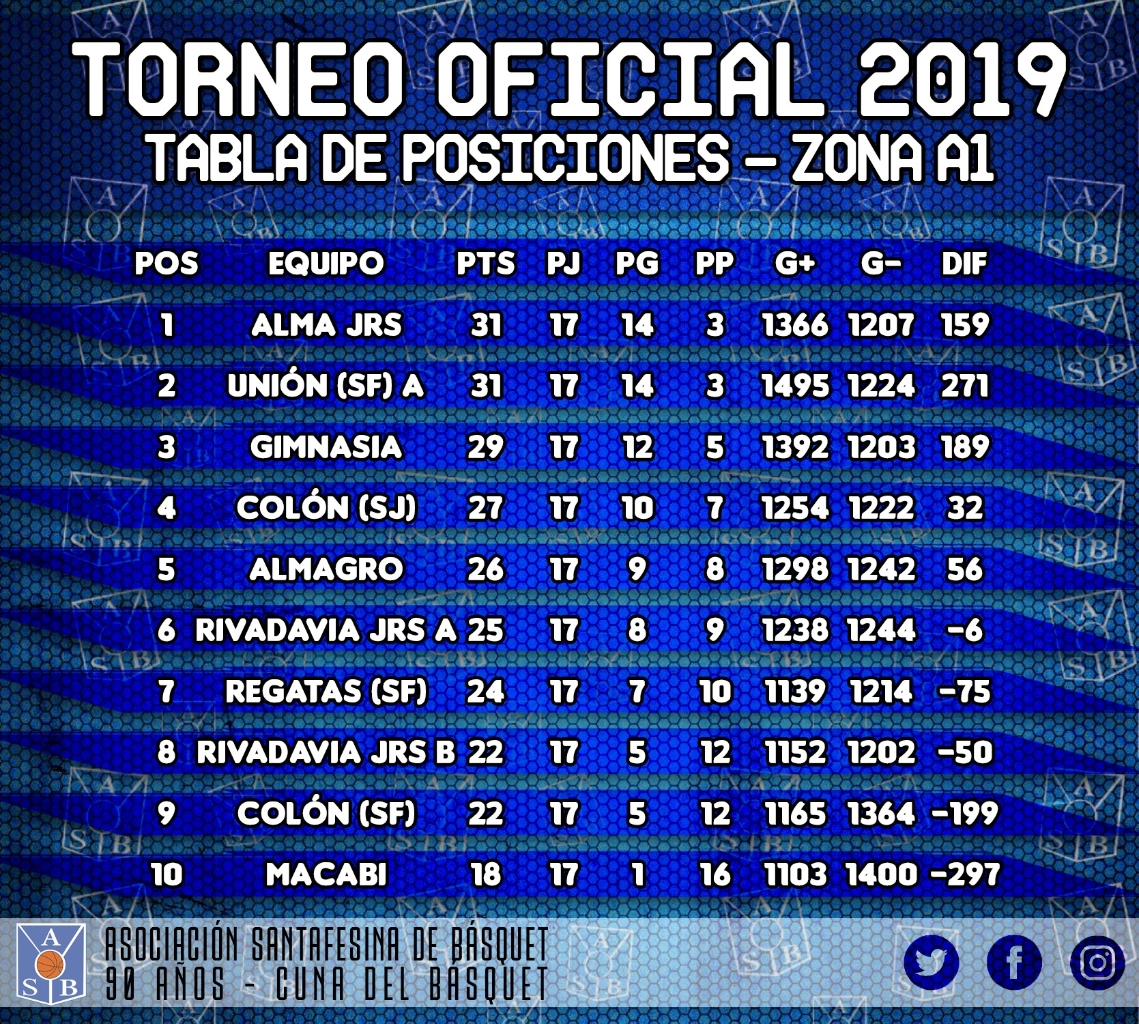 Este jueves se disputó una nueva fecha del Torneo Oficial 2019. En la Zona A1, se jugó la penúltima jornada de la fase regular, con Alma Jrs tomando la posta del certamen.