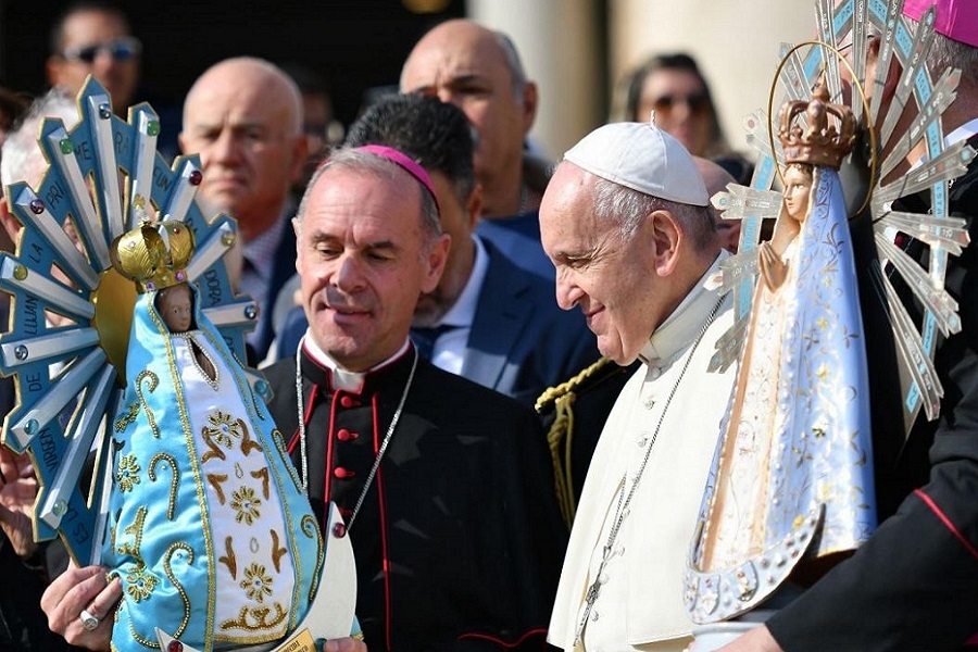 El Papa Francisco bendijo la imagen, que ahora retornará a territorio continental argentino.