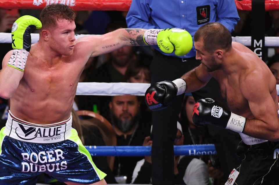 El combate comenzó lento, como se esperaba, con ambos púgiles en la etapa de prueba del rival en cuanto a potencia y boxeo, en especial “Canelo”, quien había advertido que en su primera pelea en peso Semicompleto tenía que checar la manera de moverse, recibir golpes y golpear al ruso, quien trataba de aprovechar su distancia y mayor alcance.