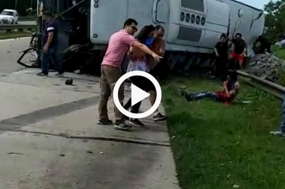 Un video de vecinos de la ciudad que circunstancialmente pasaban por el lugar permitió conocer cómo fueron los minutos posteriores al espectacular vuelco del micro de la empresa Tata Rápido ocurrido este martes por la tarde sobre la Avenida de la Constitución (ex Mar Argentino), que dejó 11 heridos, uno de ellos de gravedad.