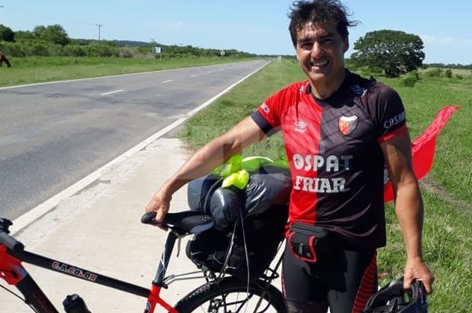 Una de ellas tiene lugar en San Javier, Jorge Nini emprendió anoche su viaje a Asunción para alentar al equipo de Lavallén, pero lo particular es que su travesía no será en auto o colectivo, va en bicicleta.