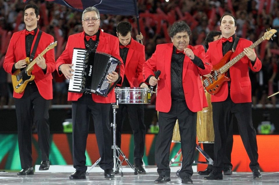 En la previa de la final de la Copa Sudamericana, la mítica banda santafesina cantó la versión "sangre y luto" de "El Parrandero".