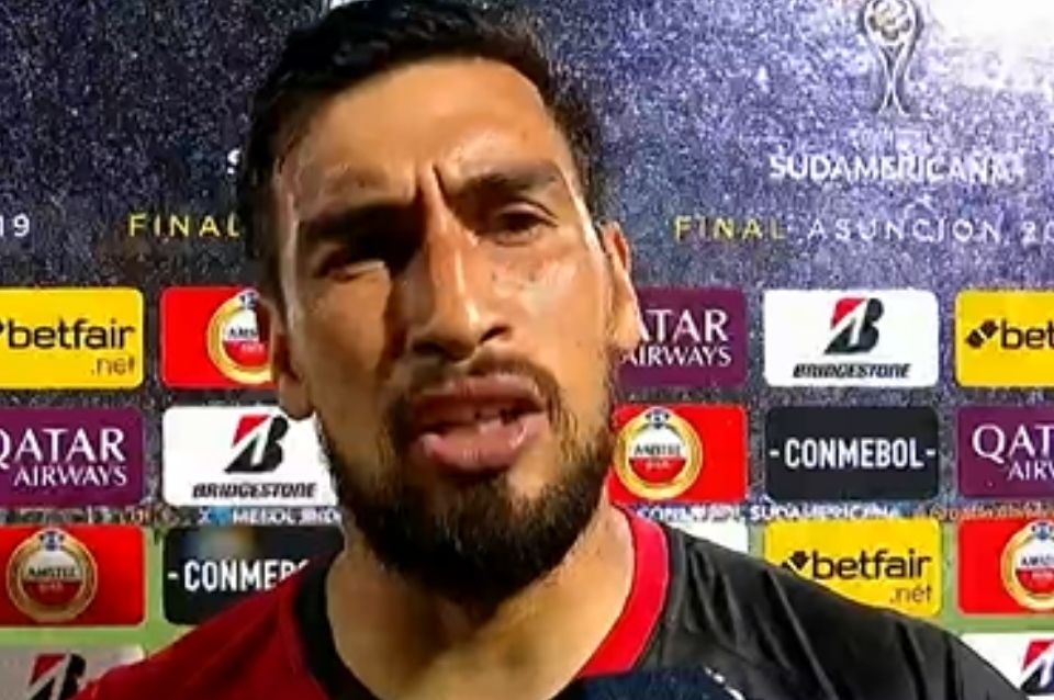 Marcelo Estigarribia fue uno de los primeros jugadores de Colón que tomó contacto con la prensa tras la derrota ante Independiente del Valle, en La Nueva Olla. Lo hizo con la transmisión de ESPN y caergó contra el árbitro brasileño Raphael Claus.
