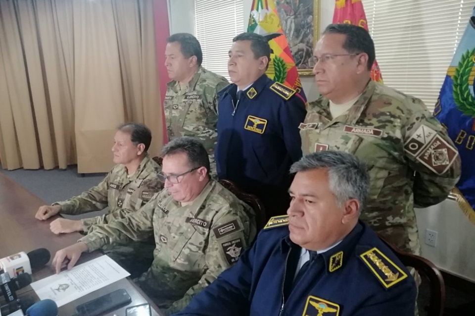 Según publicó el diario El Deber, Williams Kaliman, comandante en Jefe de las Fuerzas Armadas, le aconsejó al presidente Evo Morales que renuncie a su mandato. "Ante la escalada de conflicto que atraviesa el país sugerimos al presidente Evo Morales que renuncie a su mandato permitiendo la pacificación del país", dijo Kaliman. A este pedido se sumó el General Comandante de la Policía, Vladimir Yuri Calderón, quien también sugirió a Evo Morales que renuncie al cargo de Presidente de Bolivia.