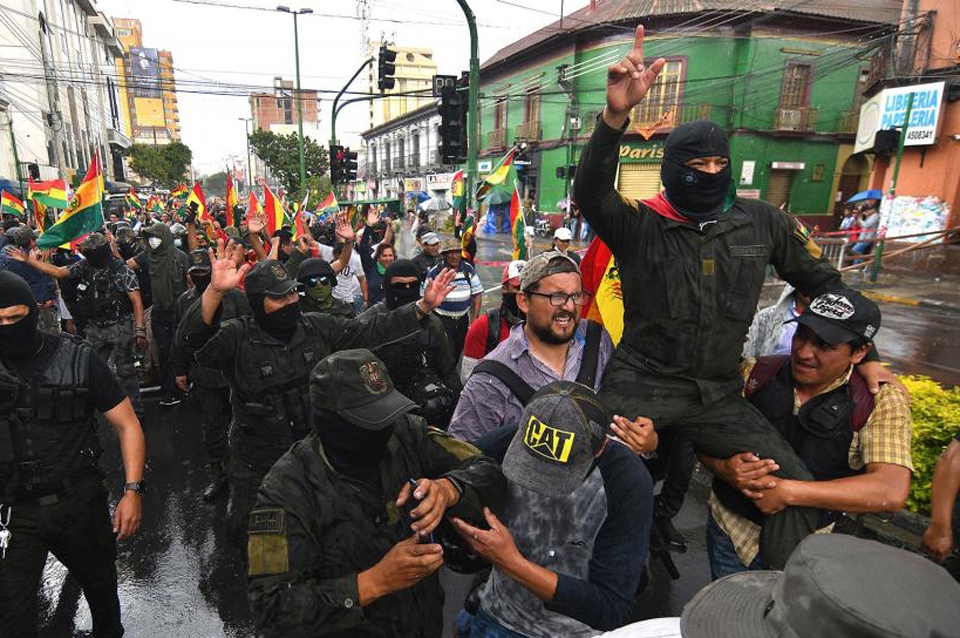 Marchas en las calles.Grupos opositores a Morales copan las calles con capuchas y palos.