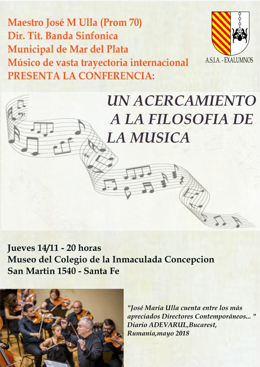 Este jueves en el Museo del Colegio Inmaculada (San Martín 1540) el maestro José María Ulla dictará una conferencia sobre "Un acercamiento a la filosofía de la música".
