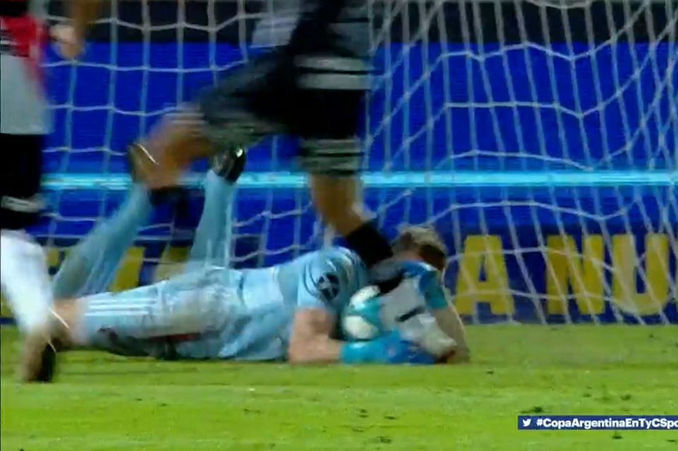 En los últimos minutos, Garay llegaba a disputar una pelota con Armani y terminó convirtiendo, pero el árbitro cobró falta sobre el arquero ¿Qué pasó? pic.twitter.com/cvSlYW9TpH