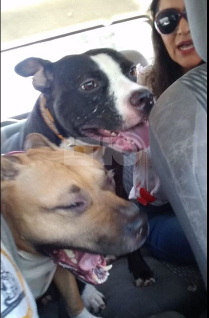 Alí y Alma, los dos pitbulls que le donaron sangre a la caniche.