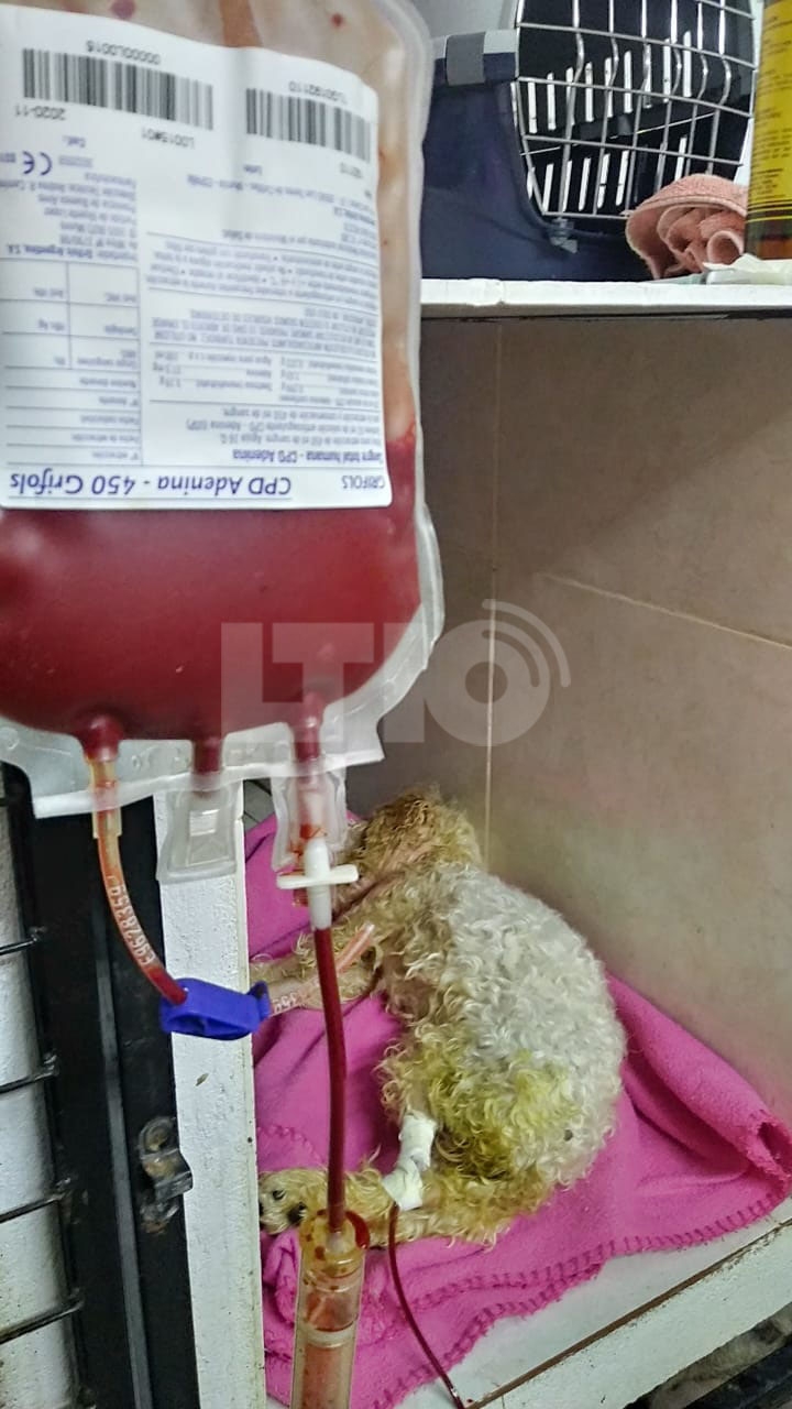 La perrita fue rescatada ayer en muy mal estado “estaba prácticamente muerta en vida”, señaló Pilar de la Peña, vicepresidenta de la Protectora de Animales. Por lo que, luego de estabilizarla le realizaron una transfusión de sangre por un grave cuadro de anemia.