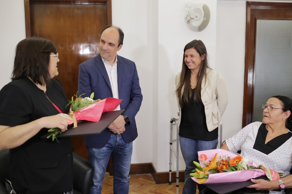 El intendente José Corral las recibió en su despacho y junto a la secretaria General, María Martín, las reconoció como Santafesinas Destacadas “porque realmente marcan la diferencia y nos dejan el mensaje de no rendirse, de luchar y jamás bajar los brazos, de sobreponerse a la adversidad desde el camino de la paz, la verdad y la justicia. Gracias por el ejemplo”, manifestó el mandatario local. Ellas, en tanto, agradecieron el acompañamiento del Municipio en estos años.