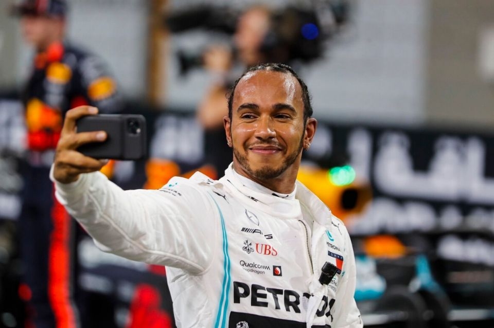 El británico logró el primer lugar en la clasificación para la carrera de este domingo en Emiratos Árabes Unidos, y fue escoltado por el finlandés Valtteri Bottas y también del holandés Max Verstappen.