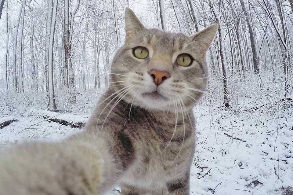 En las fotos más populares aparece en primer plano, sosteniendo la cámara con una pata. Asimismo en otras ocasiones figura descansando con su manada, jugando en la nieve, haciendo paracaidismo o hasta visitando emblemáticos hoteles.