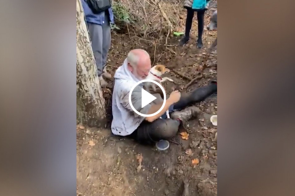 Un hombre estuvo dos días buscando a su mascota y cuando por fin la rescató se emocionó hasta las lágrimas en un momento emotivo capturado por un testigo.