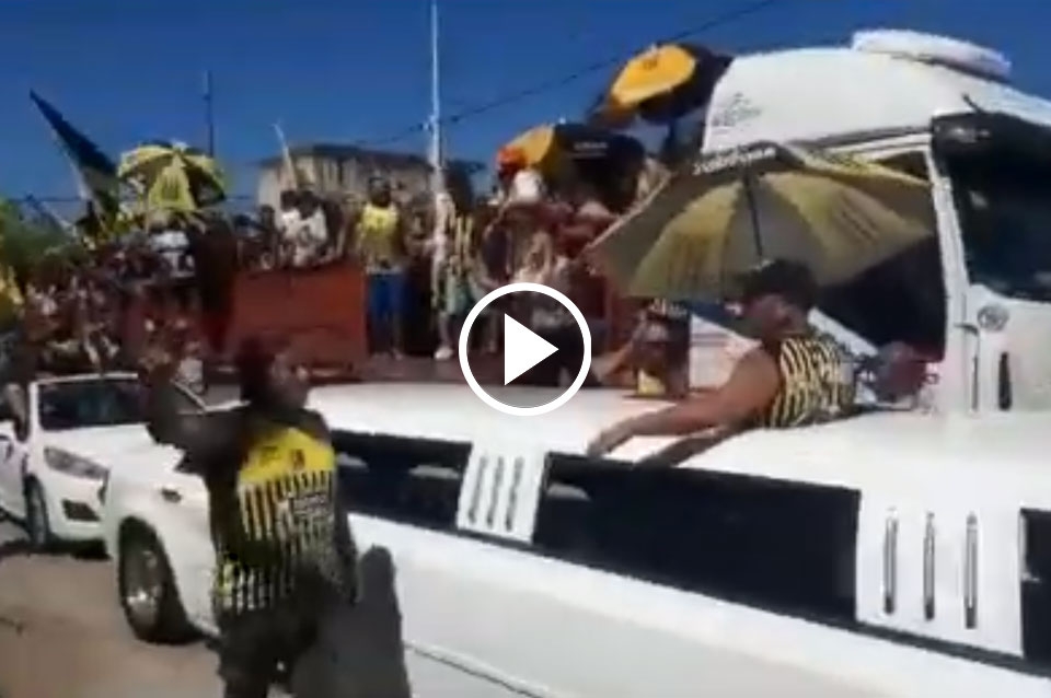 En la previa al ingreso del estadio, en donde todo era una fiesta, un grupo de hinchas de la Fragata llegó en una limusina debido al gran momento que vive el club. Además, todo los fanáticos de Almirante, vinieron en caravana de autos, motos y colectivos, pero lamentablemente deberán esperar.
