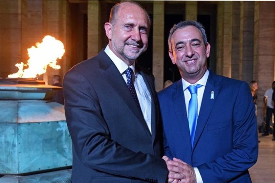 "Ser intendente de una ciudad es el orgullo más grande, que los vecinos de tu ciudad te hagan intendente es un honor enorme", señaló Perotti luego del acto que Javkin encabezó en el Propileo del Monumento Nacional a la Bandera, y le recomendó al flamante intendente: "Que esté a la altura de eso, que ponga lo mejor para darle a cada rosarino las respuestas".
