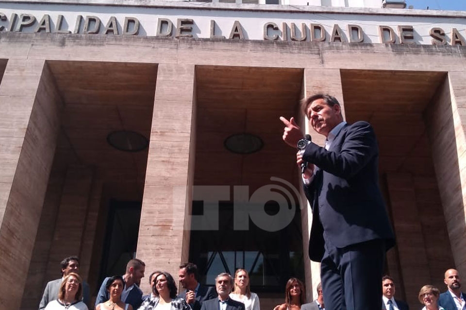 Tras el acto formal y su primer discurso brindó una conferencia de prensa como intendente.