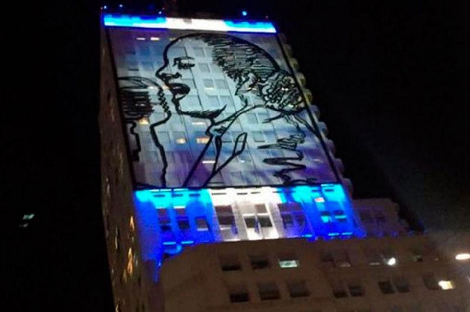Vuelven a iluminar la imagen de Evita en el Ministerio de Desarrollo Social