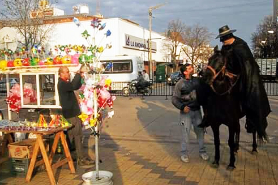 Es por eso que se disfrazó del personaje de El Zorro y a caballo se paseó por el centro de la ciudad para protestar y pedir que vuelvan a ponerlo en la pantalla.