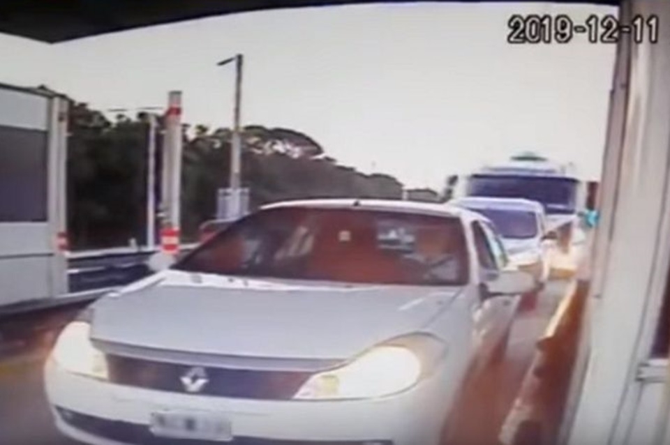 Las impactantes imágenes quedaron registradas en las cámaras de seguridad del peaje. El choque se produjo cerca de las 20:30 del miércoles y en el video se observa a dos autos en fila esperando para pagar cuando aparece el camión con acoplado a gran velocidad e impacta a ambos por la parte trasera, arrastrándolos varios metros.