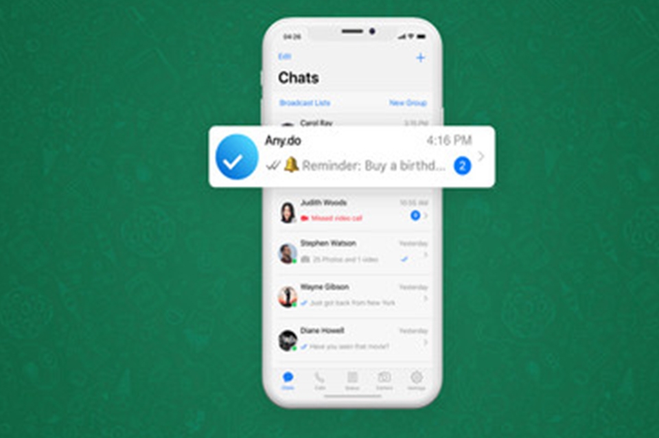 La aplicación WhatsApp incorporó a su servicio de mensajería a Any.do, un gestor de tareas que ahora permite programar recordatorios y recibirlos a través del servicio de mensajería.