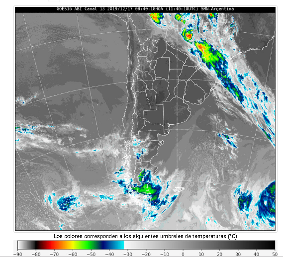 El mapa satelital del SMN muestra el cielo prácticamente sin nubes sobre territorio argentino