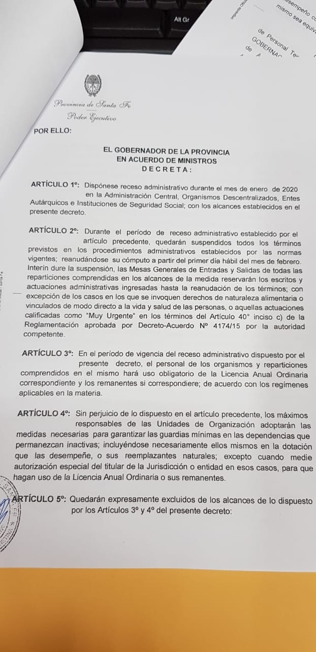 El gobernador Omar Perotti firmó el decreto que obliga a todos los trabajadores provinciales a tomarse su receso anual durante el mes de enero.