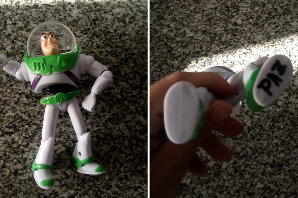 Al igual que lo hace Andy en la película, la dueña escribió su nombre bajo el pie de los juguetes. "Encontramos a Buzz y busca a PAZ”, escribió Miguel en Twitter y difundió dos fotos: una de Buzz Light Year y otra del nombre escrito bajo el pie.