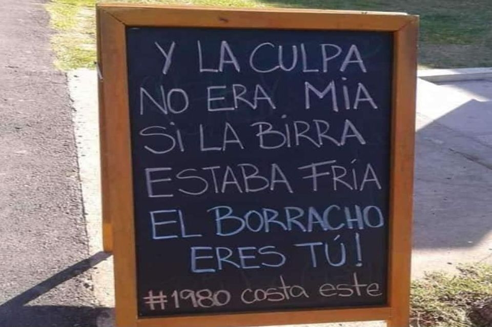 Replicando el canto feminista que dice "la culpa no era mía, ni dónde estaba, ni cómo vestía" haciendo referencia a las violaciones, el bar puso en su cartelería "la culpa no era mía si la birra estaba fría, el borracho eres tú".